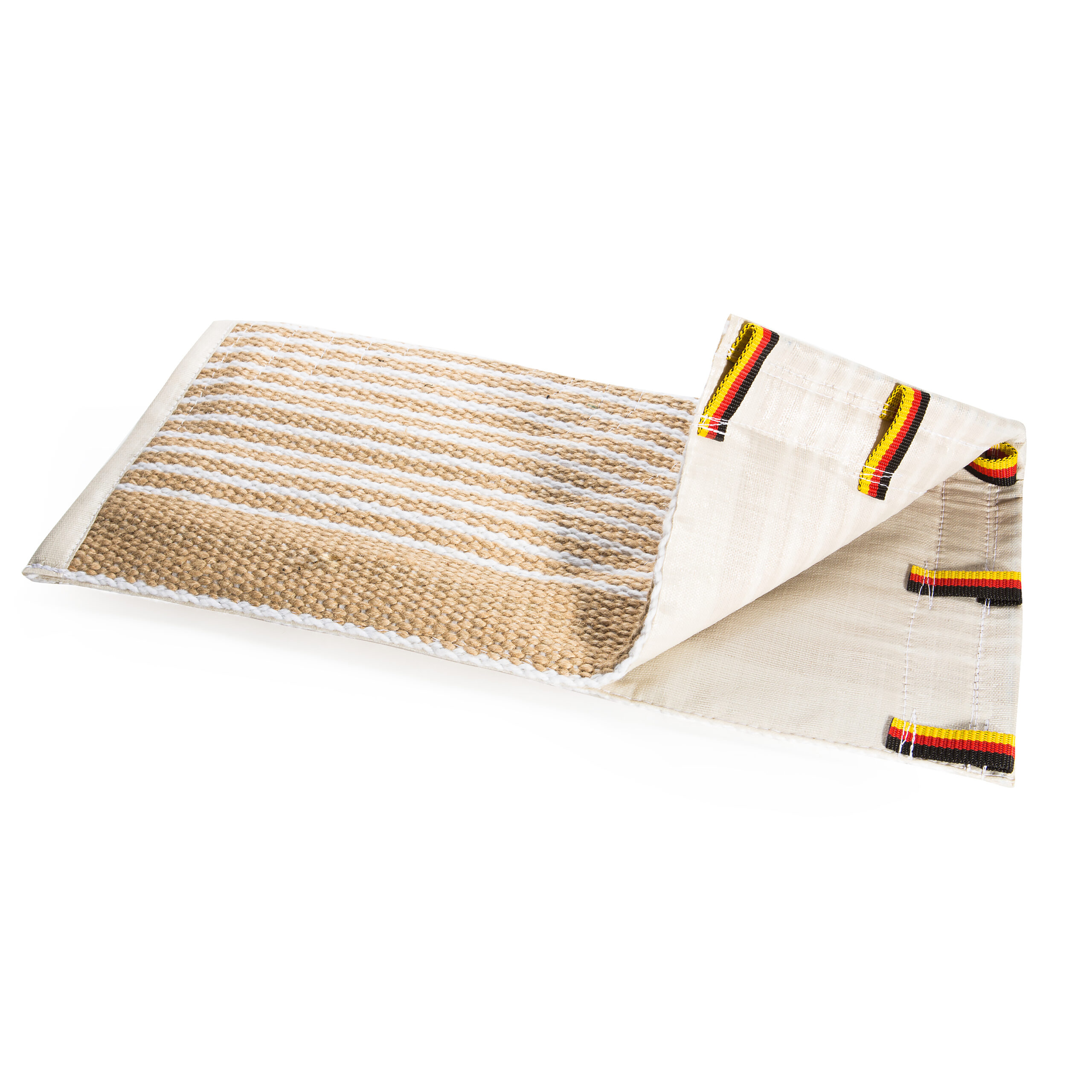 <p>The cover is made of pure woven jute of the highest quality, lined with jute, felt and foam for a softer bite. Stitched several times, to increase durability. The cover has solid loops on the top to connect the cover with a strap to the Schutzarm sleeve. For left and right Schutarm sleeves.</p>
