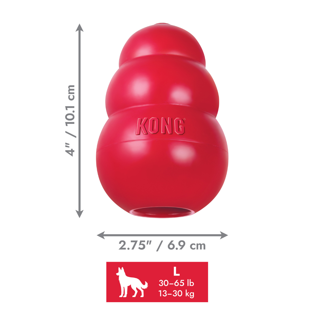 The KONG Classic is the standard for dog toys and has been the toy for dogs around the world for more than forty years. The unique natural red rubber formula of the KONG Classic is ultra-durable with a capricious resilience that is ideal for dogs. Kong La