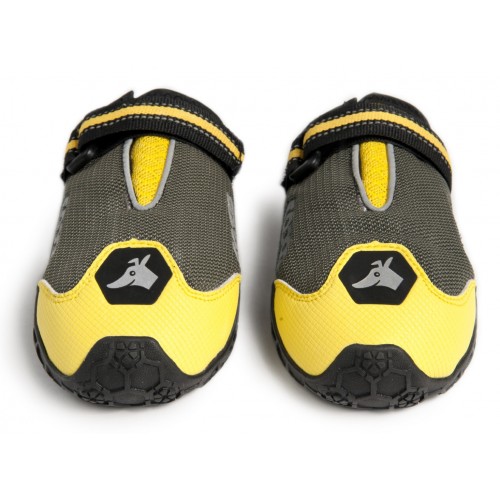 De zool loopt aan de voorkant door naar de bovenzijde voor extra bescherming van de tenen en nagels. De hondenschoen heeft een waterafstotende coating zodat het meeste vocht wordt weggehouden van de poten. De bijgeleverde sokken zorgen voor nog meer bescherming tegen water en vuil.