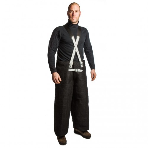 KNPV vlasbroek. 3 Laags uitgevoerd en sluiting met riemen en gespen en schouderbanden