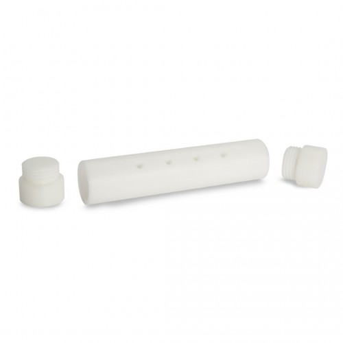 Wiite POM geurbuis met gaten en schroefbare einddoppen Lengte 17cm. Ideaal om speurhonden te trainen